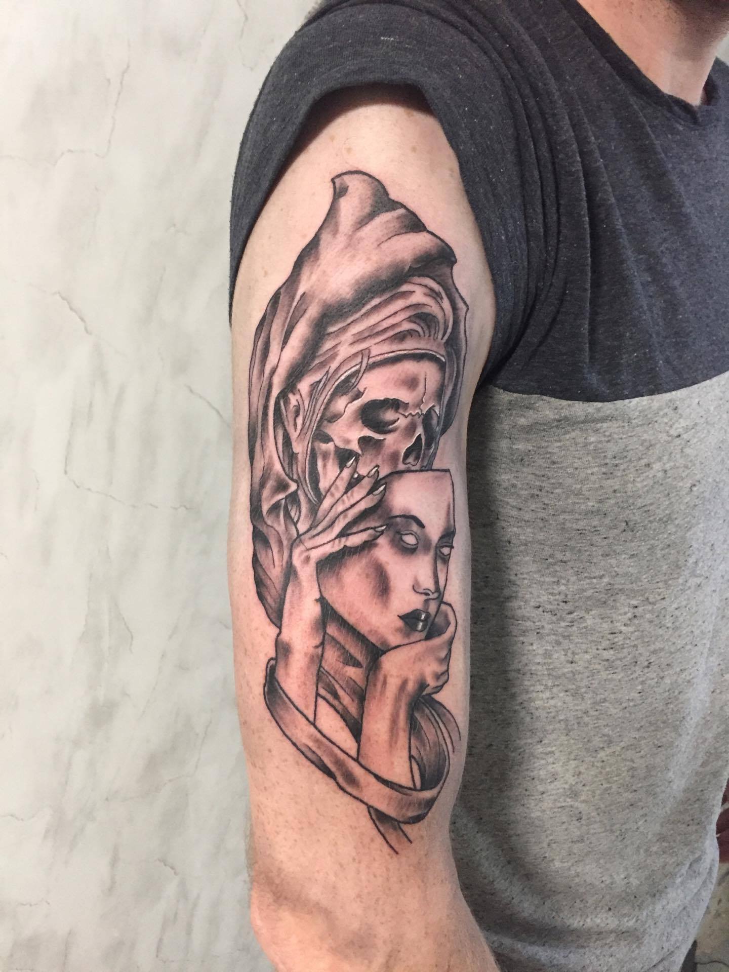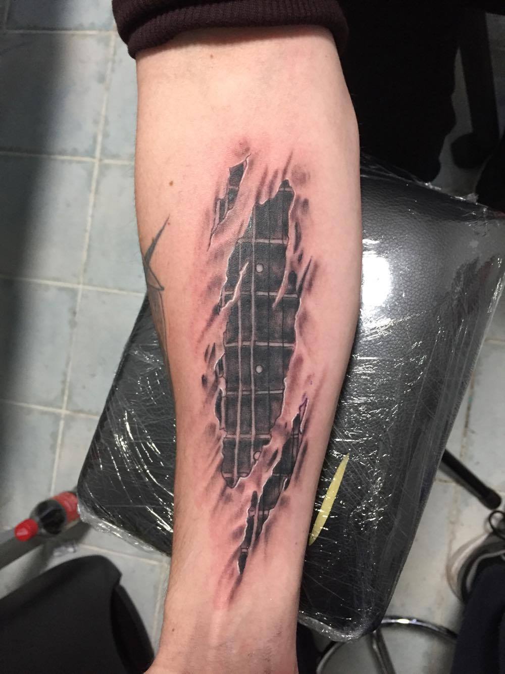 Before Tattooing i had studied Music Production at Uni Level, to which i Graduated in 2013. I Play guitar and am trained as a Sound Engineer, although drawing was something i always did during my studies in spare time and of course I would have always loved to be doing something within Art, that suited my own style of drawing and personality.